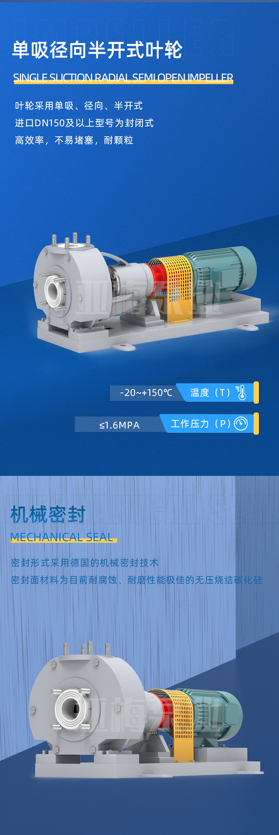 YMGW系列尿素熔融高溫泵,是我公司根據化肥行業特殊工段上輸送高溫介質或低溫易結晶易固化介質的需要,研制而成的一種單級單吸化工離心泵。